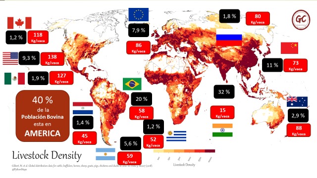 La Población mundial productiva de ganado se encuentra en América, siendo el 40 % de la población global de bovinos, pero como un 33 % (India) no se dedica a producción para abastecer mercados, esto hace que la población Americana sea la única capaz de abastecer los requerimientos globales.