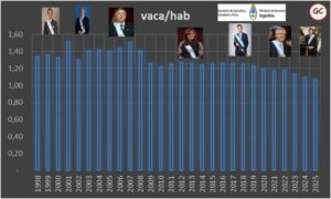 Lo esperable para el gobierno de Javier Milei es que las señales de apertura de mercados y de no intervención van a hacer aumentar el Stock, pero esto se verá de manera desfasada entre el ciclo de gobierno y el impacto en el stock, porque el periodo biológico es de 2.5 años y arrancó recién ahora luego de 2 años de Gobierno del actual Presidente.