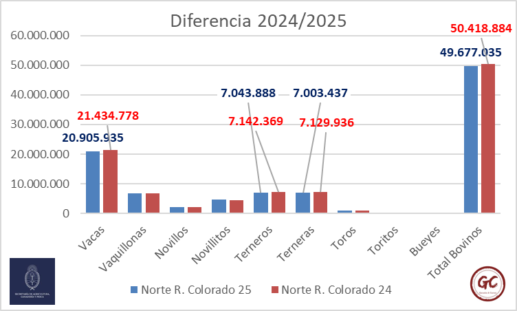 En contrapartida y para que tengamos datos para afirmar que se retienen machos la cantidad de novillitos creció, en 2025 respecto a 2024, o sea la tendencia que hablamos en los párrafos anteriores está corroborada por el stock.