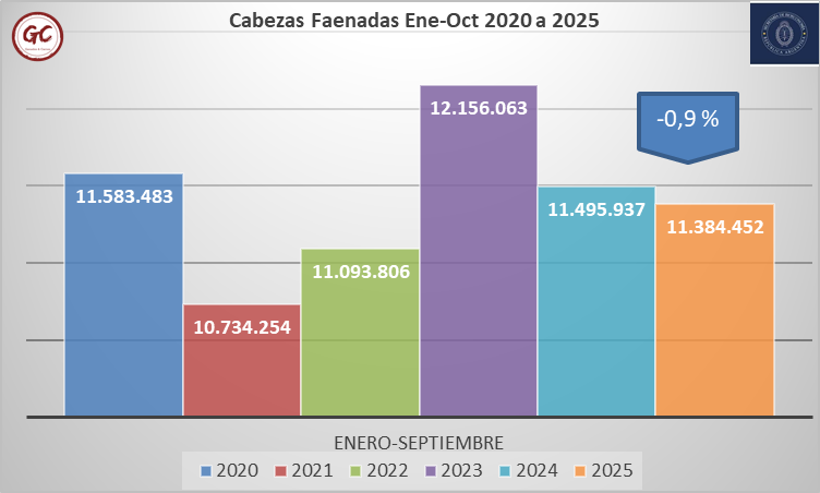 La cantidad de cabezas remitidas para faena resulta un poco inferior a la remitida en 2024, pero en ese volumen podemos decretar un empate técnico.