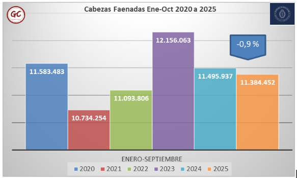 La cantidad de cabezas remitidas para faena resulta un poco inferior a la remitida en 2024, pero en ese volumen podemos decretar un empate técnico.