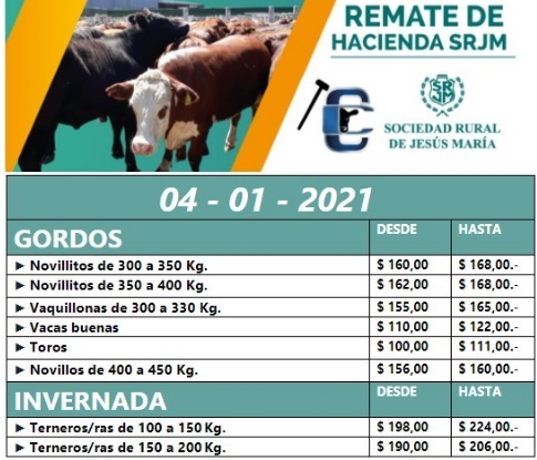 Precios estables en el 1er remate de 2021 en Sociedad Rural de Jesús María